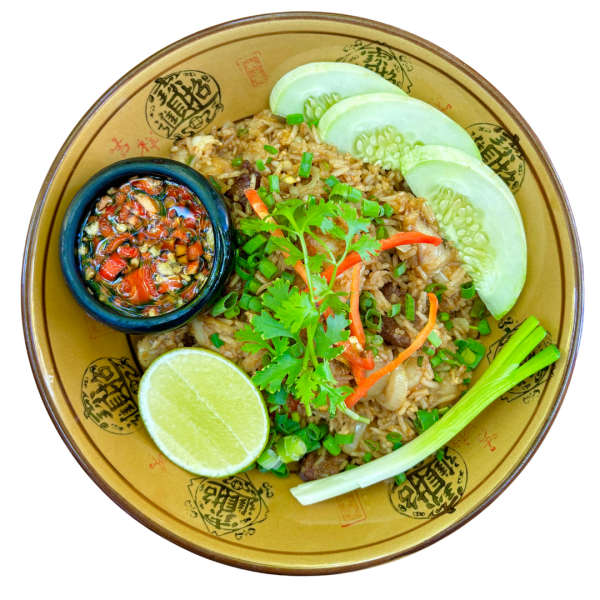 stir fried basmati rice • shrimp paste • chicken • egg • mango • red onions • spring onions