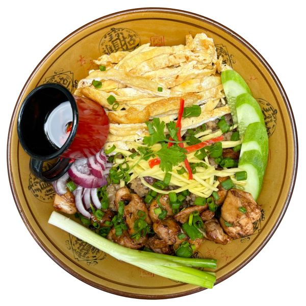 stir fried basmati rice • shrimp paste • chicken • egg • mango • red onions • spring onions